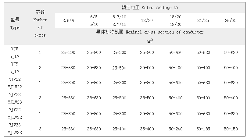 ●工頻額定電壓Uo/U為3.6/6KV-26/35KV。